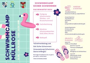 In der dritten Ferienwoche bietet der Sport- und Förderverein der Schule Müllrose folgende Aktivität zur Stärkung der Schwimmfähigkeiten an: