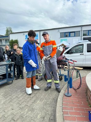 Am Ende der zehnten Klasse steht für viele die Berufsausbildung. Am Freitag, dem 16.5. konnten die Schülerinnen und Schüler der GOS Müllrose nun schon zum 17. Mal erleben, welche vielfältigen Möglichkeiten es dafür in und um Müllrose gibt. Die Firma HTS Zimmer war der Gastgeber des Tages des offenen Unternehmens. Von 8 Uhr bis 12 Uhr waren Schülerinnen und Schüler der Klassenstufen 5 und 7 bis 10 zu Gast bei der Firma HTS Zimmer, auf deren Gelände der Tag des offenen Unternehmens stattfand. Mehr als 50 Firmen und Organisationen aus Müllrose und Umgebung stellten Möglichkeiten für Berufsausbildung und ehrenamtliche Tätigkeit vor. Vertreten waren viele Handwerksbetriebe, aber auch mittelständische und große Firmen wie das IHP Frankfurt (Oder) oder Arcelor Mittal. Dabei ging es überall sehr praktisch zu. Bei der Agrargenossenschaft Ziltendorf beispielsweise konnte man in zwei großen Traktoren probesitzen. Und wer Stahl einmal selbst verformen wollte- bei Arcelor Mittal ging das. Wenn es ein sozialer Beruf sein soll, konnte die Lebenshilfe genaustens informieren. Und auch Feuerwehrleute werden immer gebraucht. Bei der Feuerwehr des Amtes Schlaubetal erfuhr man, wie man das wird. Darüber hinaus boten auch andere gemeinnützige Organisationen interessante Perspektiven an, so z.B. der Sportverein des Ortes, der sich mit verschiedenen Möglichkeiten zur körperlichen Betätigung einbrachte. Abgerundet wurde das Ganze durch musikalische und kulinarische Begleitung sowie als besondere Attraktion der Aufstieg in bis zu 25 Meter Höhe mit der Hubbühne der Firma Baumpflege und Baumfällarbeiten Torsten Kühl.